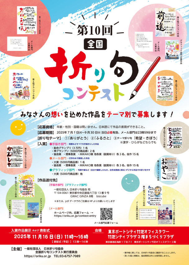 2025年10月上旬、日本折り句協会ホームページにて審査結果を発表します。